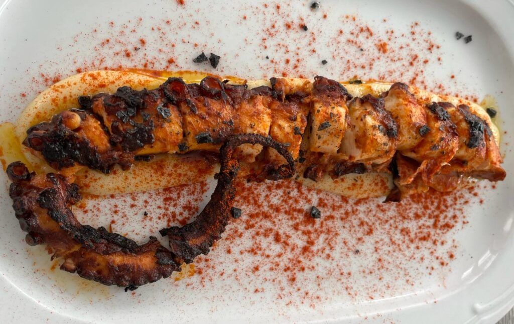 Pulpo a la gallega tres cociones sobre crema de patatas y ajo negro -sin gluten-