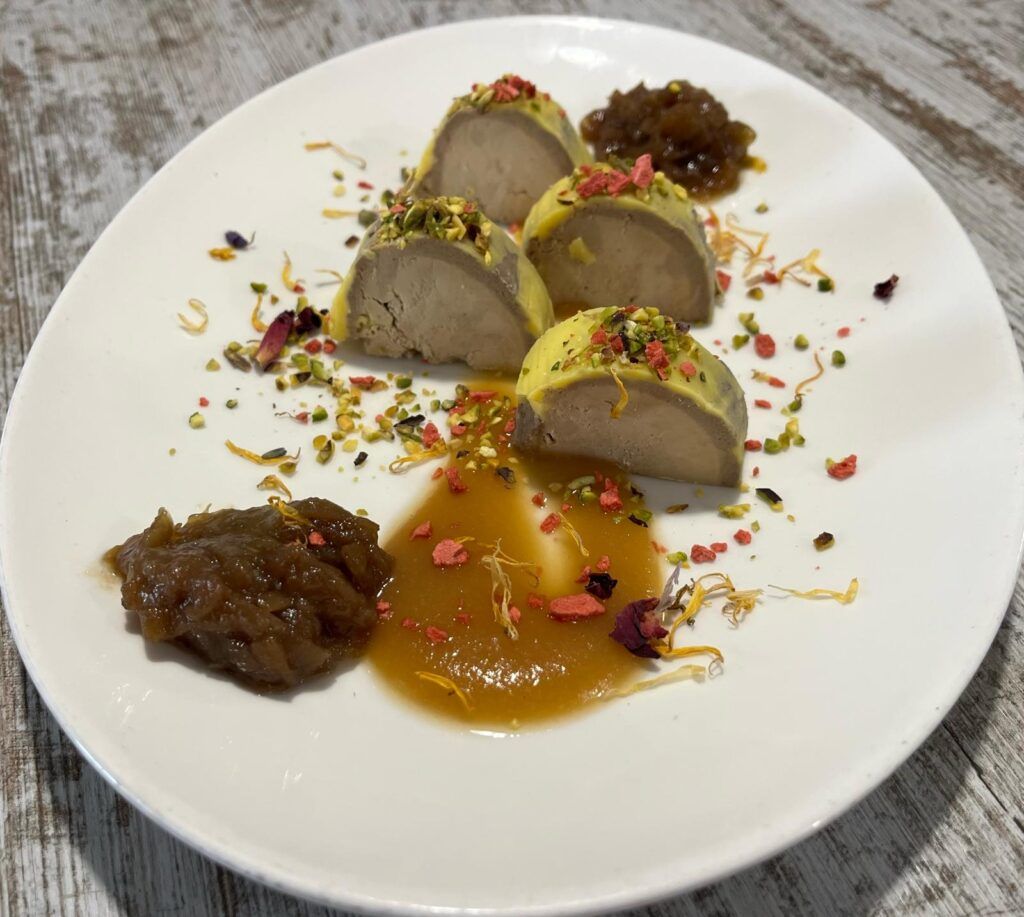 Foie de pato casero con compota de manzana y cebolla caramelizada